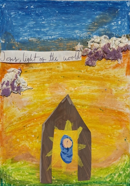 This a small selection of the excellent entries to the 2025 Woodard Christmas Card competition. This year’s theme was: ‘Jesus, the Light of the World, is Born Among Us’. The winning entry came from Alice Mackay who is in the Lower 6th at Denstone College. Her image, a lino print, features a baby wrapped in a blanket set on a golden pattern. The runners up were: